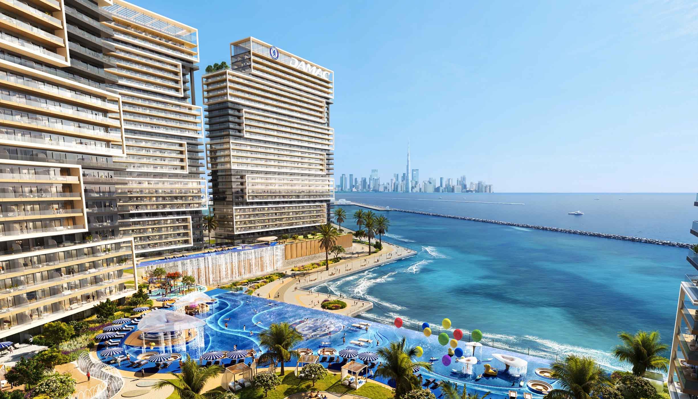 A breakthrough collaboration between Chelsea Football Club and DAMAC Properties, this newly launched estate is the first football-branded residence in Dubai. From being a blank canvas to a haven of winning spirit, Chelsea Residences 2 is designed to be a perpetual sanctuary of comfort and elegance. Inside, each unit comes with a spectacular layout featuring a modern kitchen, spa-like bathroom, roomy living area, expansive balcony, integrated laundry, and advanced home automation. Enhanced with premium finishes, biophilic features, 3.4 meters of vaulted ceiling that adds an illusion of space, and natural light that passes through the floor-to-ceiling glass wall windows that also frame the 270-degree panoramic view of the Arabian Gulf and Dubai’s iconic skyline, the signature branding of Chelsea is delivering a one-of-a-kind living space and experience inspired by the champions.